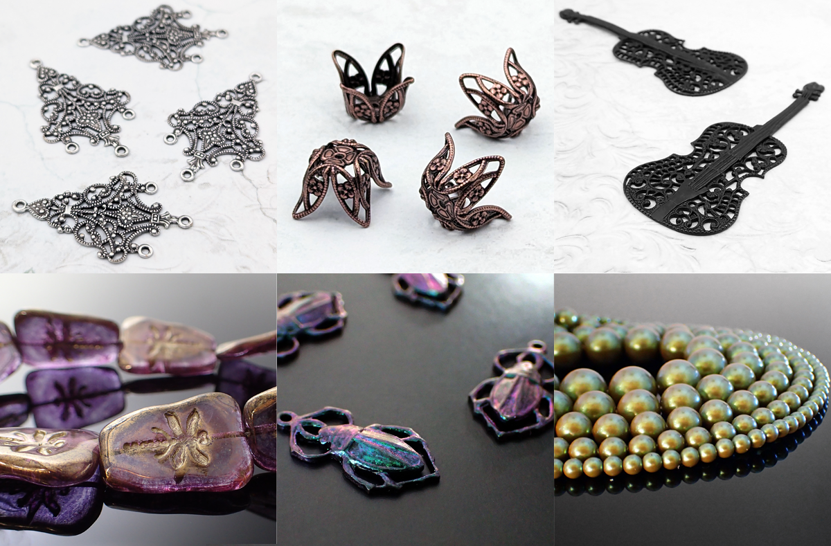 We offer vintage-style jewelry-making supplies sourced mostly from the USA and Europe. We specialize in brass stampings made from antique tooling (offered in nickel-free plated finishes), artisan Czech glass beads, and high-quality brass jewelry findings. We also offer some digital design assets for your other creative projects.